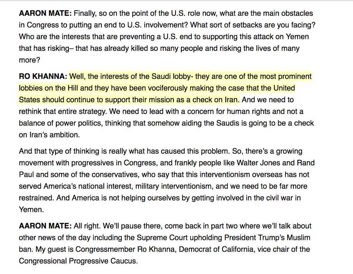 6/ When I spoke recently to Rep. @RoKhanna , he said Saudi lobbying/influence in DC makes it all the more difficult to stop US support for the attack on Yemen: https://theintercept.com/2018/08/01/rex-tillerson-qatar-saudi-uae/ …pic.twitter.com/n016K8fzX4