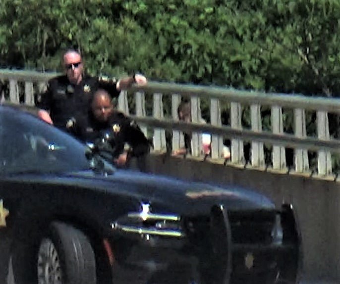 Police waiting with girl (female) standing over rails on bridgepic.twitter.com/0H3MFXjUI8
