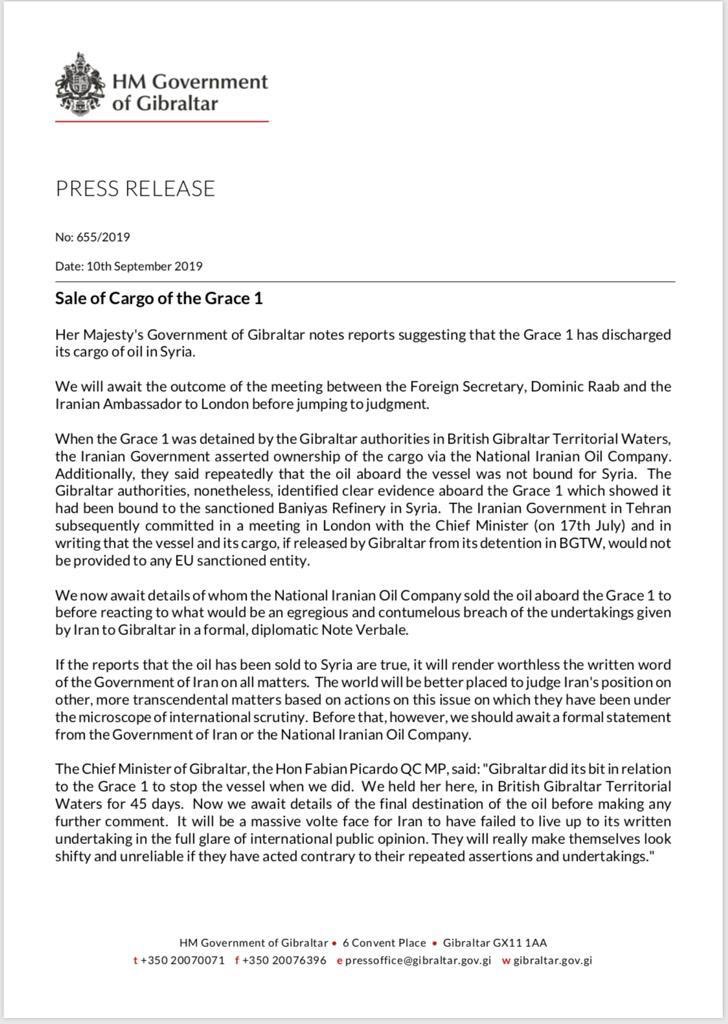 Yesterday's tweet by the Chief Minister of Gibraltar. The 5th paragraph says a lot. We have to look at credibility outside this tanker situation: the JCPOA nuclear agreement.https://twitter.com/FabianPicardo/status/1171476439889133571?s=20 …