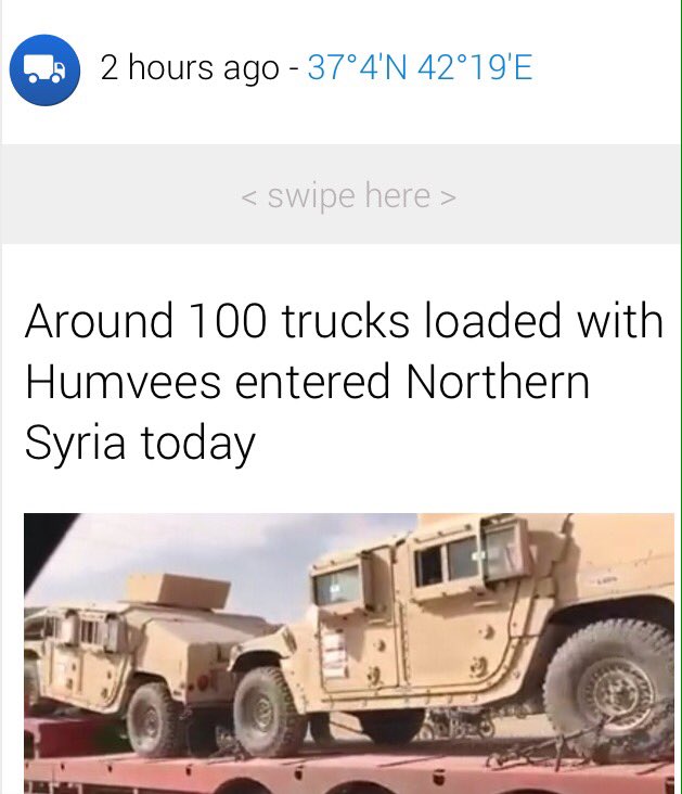 Around 100 trucks loaded with Humvees for SDF have entered Hasakah province todaypic.twitter.com/6XfHRtKRCd