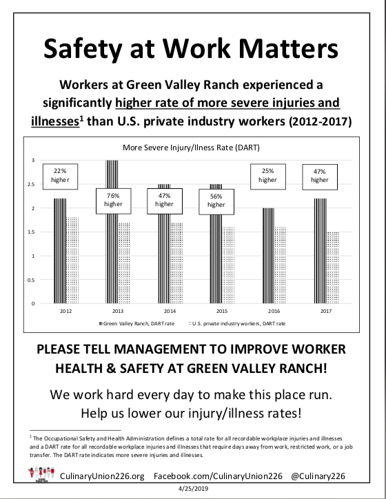 : “We work hard every day to make @GVRcasino run. Help us lower our injury/illness rates!” FACT: Workers at@GVRcasino experienced a significantly higher rate of more severe injuries & illnesses than U.S. private industry workers (2012-2017).pic.twitter.com/lkGGJNLZgx