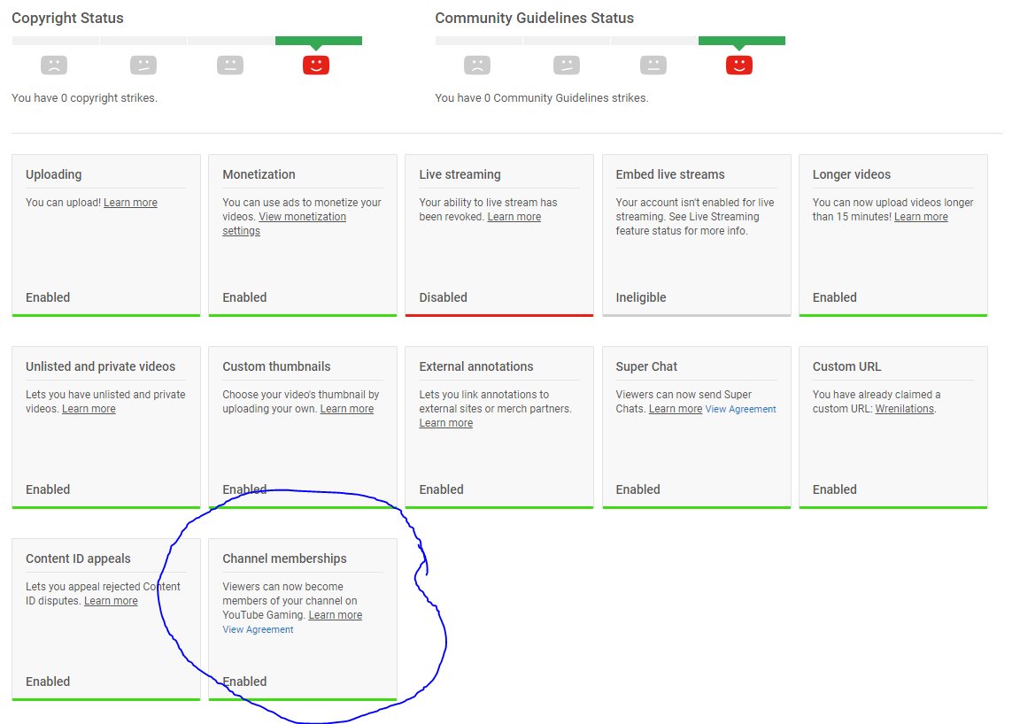 The frustration I feel right now. words fail me. @Wrenkindlehell and I had been given the ability to have channel memberships many many thousands of subs below the 50k it normally requires. I was excited for the future of the channel.pic.twitter.com/WCD19GsVWd