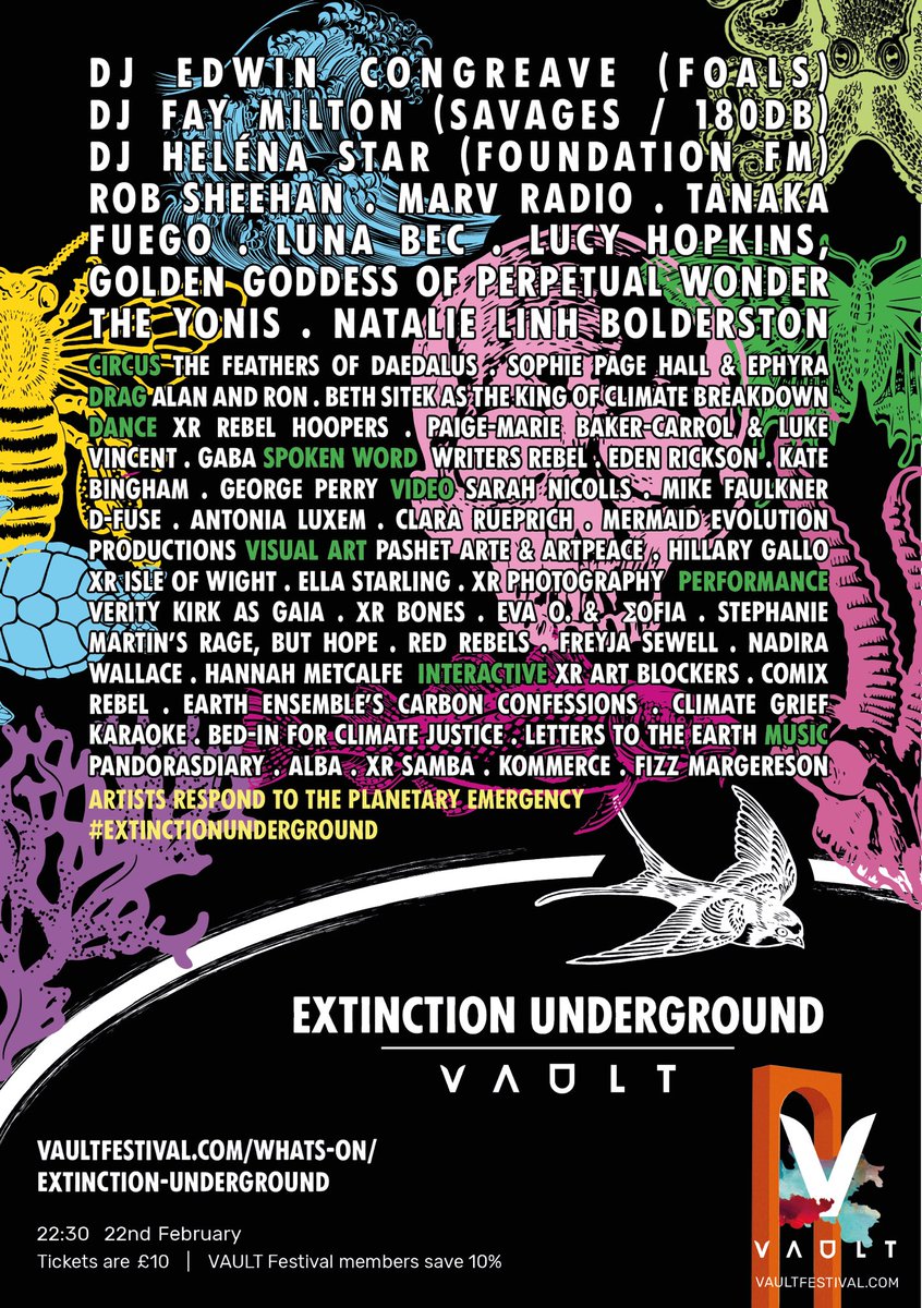 #ExtinctionUnderground festival next 22-Feb! 80 artists fighting the#climateemergency Tickets: https://vaultfestival.com/whats-on/extinction-underground/ …@VAULTFestival#VAULTFestival2020@xrebellionuk@musicdeclares @extinctionrebellion@culturedeclarespic.twitter.com/jlVMJKmRwr