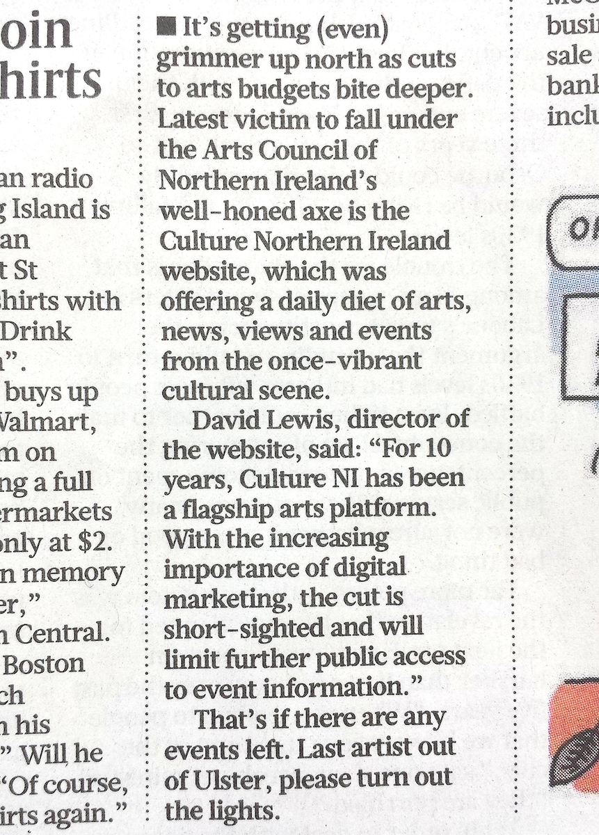 “@CultureNI: Sunday Times have today featured our story http://ow.ly/KASVl pic.twitter.com/Umv5N7lsdK” more jobs axed in #arts #heritage
