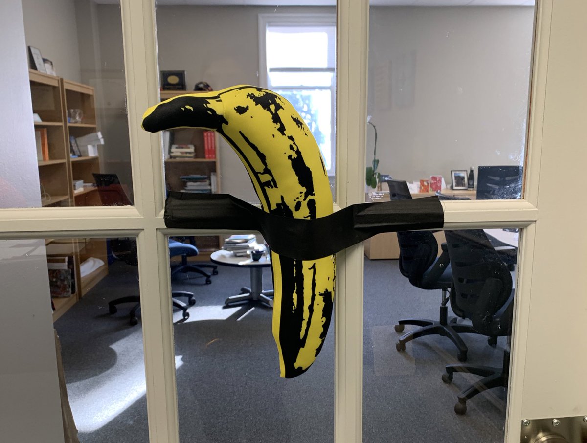 This Andy Warhol dinner party prop has been reinstalled onto our Director and CEO Adam Levine’s office door