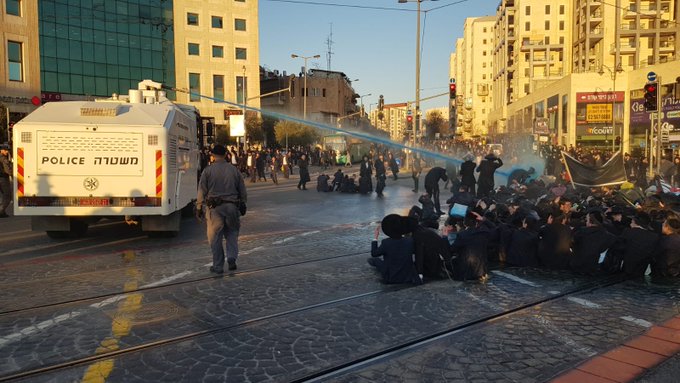 #demonstrate yesterday in the streets of#Jerusalem, over the Detention of boys and girls rejecting#Zionist Criminal Army draft@IDF, Israeli police used#cruel#brutal methods against the protesterspic.twitter.com/0zCLgqW1sx