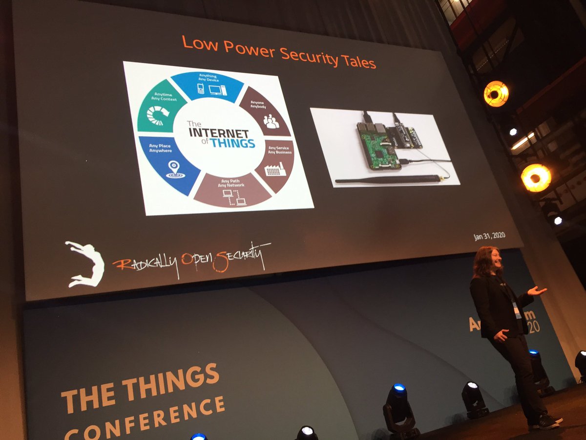#LPWAN: crypto costs power” Honoured to have hackceleb#melanierieback from#radicallyopensecurity on stage at#TheThingsConferencepic.twitter.com/Hqp82Edzwp