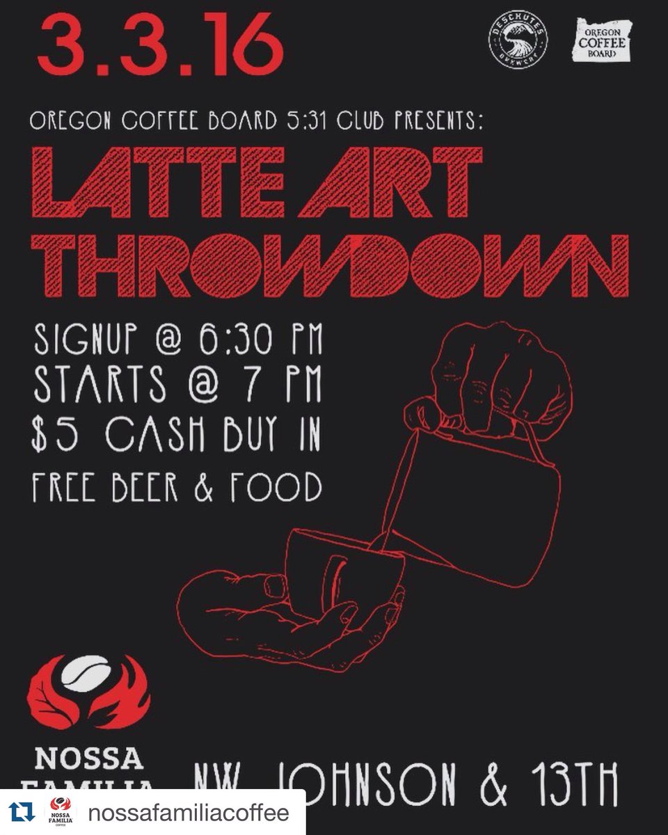 Ain't no party like a @NossaCoffee party ... Latte art throwdown happening tomorrow ... Pdxcoffee #thepearl #repost pic.twitter.com/gep50fsYRq