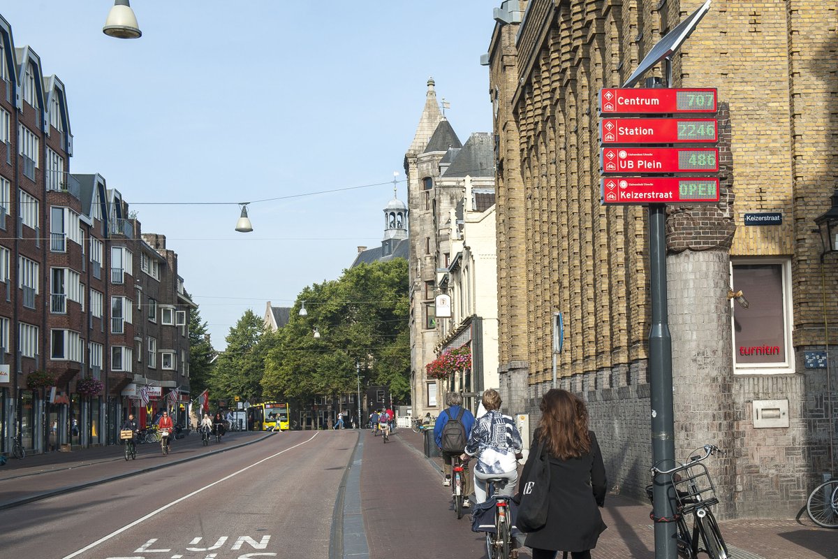 Launched in 2015, Utrecht's ‘P-Route Bicycle’ system guides cyclists to the 3500 spaces in six parking facilities in the city center. Digital signs are updated in real-time to show the number of available spots; which is also available via a website/app. https://lumi.guide/portfolio-items/p-route-bicycle-utrecht/ …pic.twitter.com/DZ5oH8KCGd
