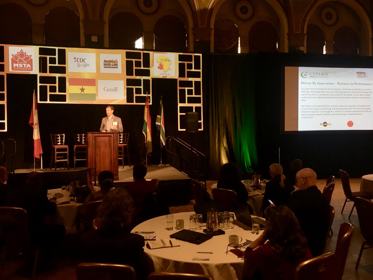 @CypherEnv CEO Todd Burns, speaks this morning at@miningsuppliers Canada +@CCAFRICA2012#AnnualForum on 'Reduction of Operational Costs and#Environmental Footprint Through Better Haul Road & Tailings Management'.pic.twitter.com/Qq3ztM6DZl