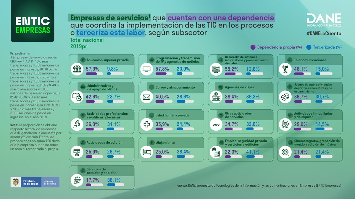 #comercio y 34,8 % de las empresas de#industria, que implementaban#TIC en sus procesos, tercerizaban estas tareas.#DANELeCuentapic.twitter.com/Jwy79V0ww6