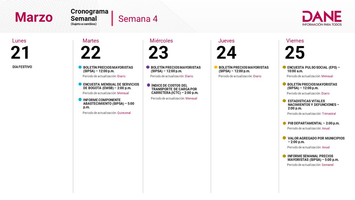 Conozca las investigaciones que el DANE publicará esta semana. http://www.dane.gov.co pic.twitter.com/2R2Awk5hz6