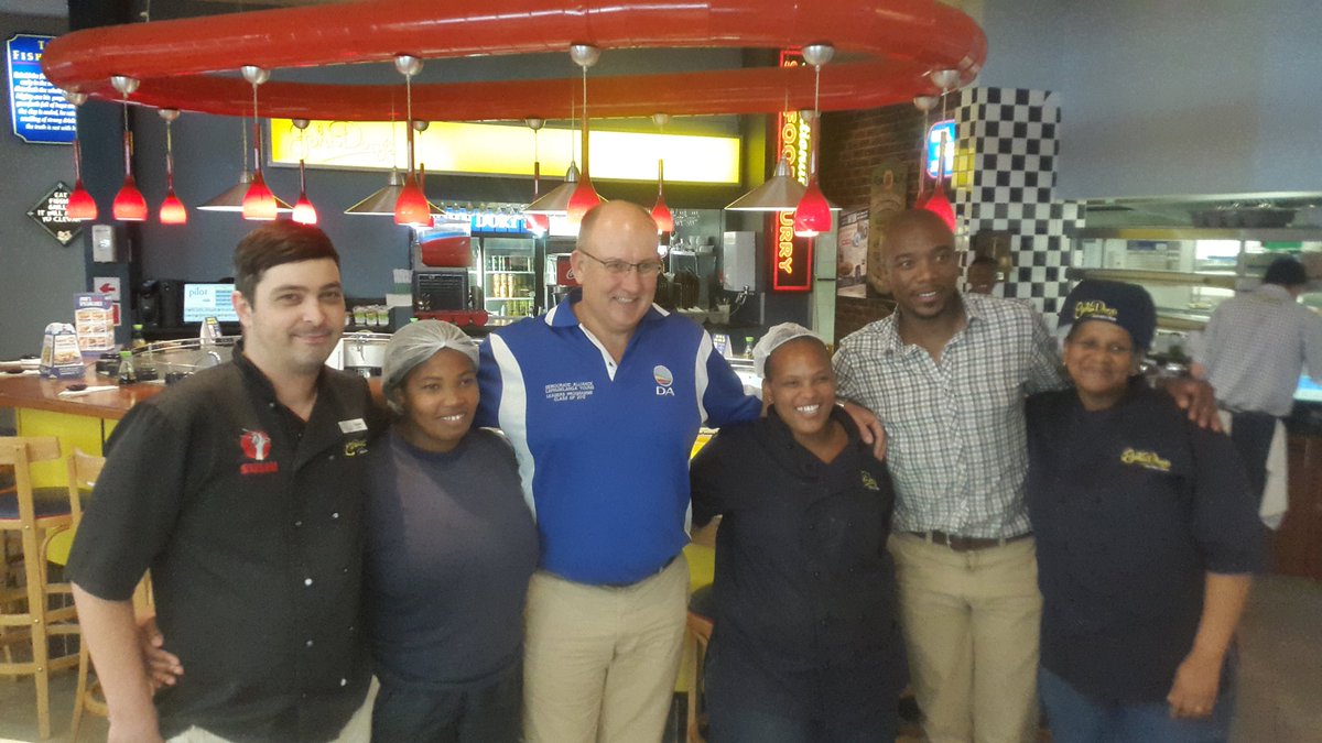 Mmusi and NMB Mayoral candidate Athol Trollip greeting fans at @johndor in Walmer Park, PEpic.twitter.com/bSuZpqpRXw