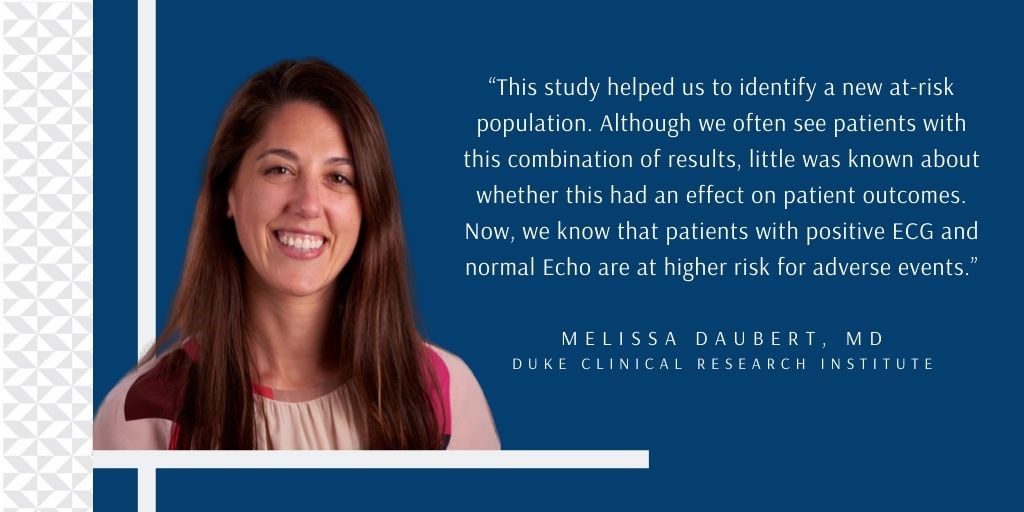 #ECG despite normal stress#echo could be warning sign according to findings from a DCRI-led study recently published in@JAMAInternalMed | “This study helped us to identify a new at-risk population." ~ Melissa Daubert Learn more: http://bit.ly/2v4aeZf pic.twitter.com/wVCP3oj0u9