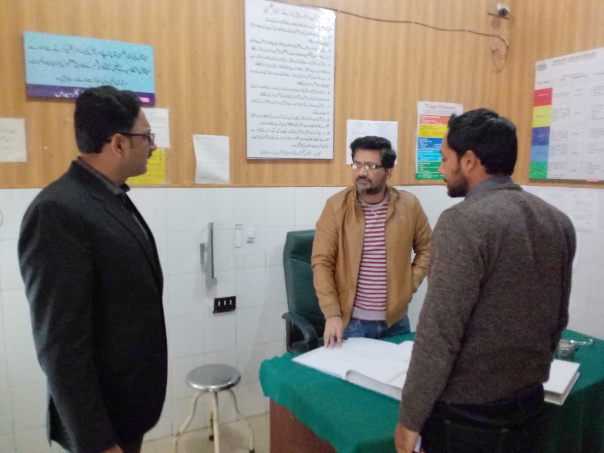 @hrizwan2 paid a surprise visit to THQ Hospital Gujar khan. All staff was present as per duty roaster. Also Interacted with visitors to get feedback and visitors showed satisfaction over the services delivery.@GOPunjabPK@PSHDeptpic.twitter.com/EKuP1sPxNS