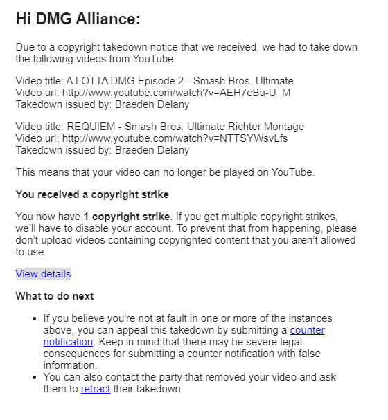 .@YouTube @TeamYouTube A former editor for our channel is very clearly abusing your copyright strike system because he has a personal vendetta to take my team's channel down. Can you PLEASE make it not possible for 1 person with a grudge to have this much power? Save my channel pic.twitter.com/MvcRXrm4MI