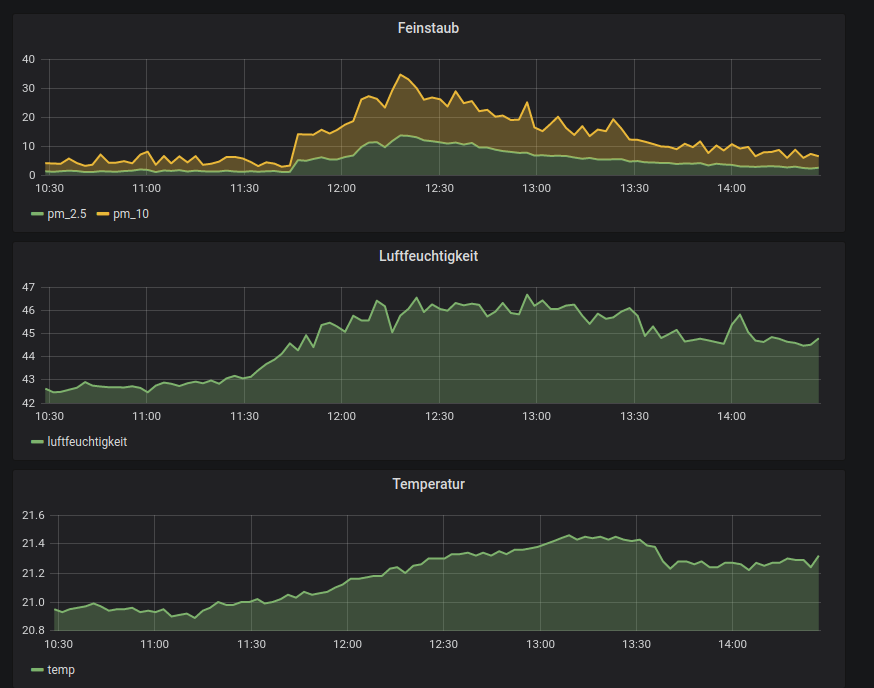 ist so 10m von der Küche entfernt; der Luftstrom von der Lüftungsanlage geht vom Sensor Richtung Küche.