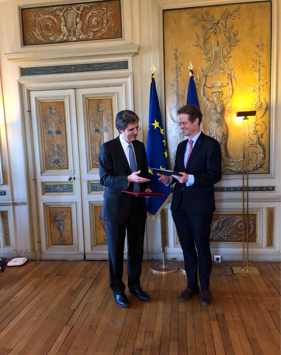 Entrée en vigueur du Traité d’Aix-la-Chapelle: l'#Amb_NML vient de remettre l’instrument de ratification au secrétaire général du Quai d’Orsay, François Delattre