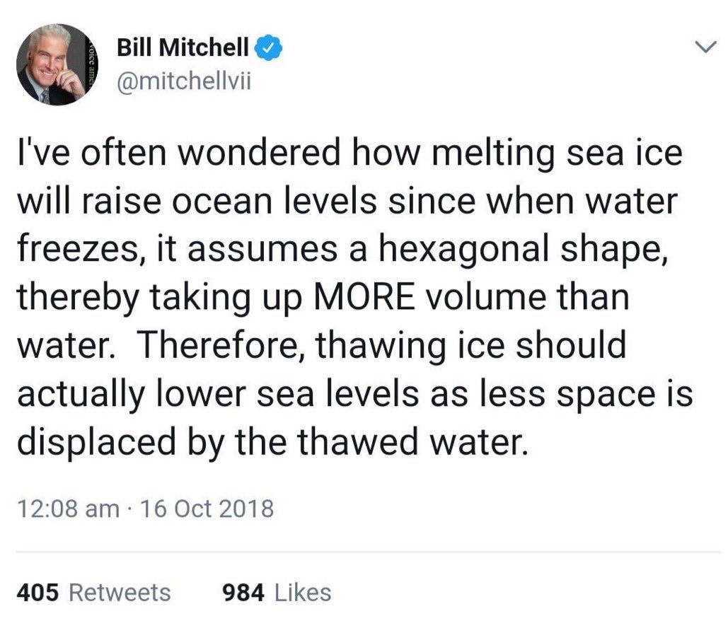 But ice also floats above the surface of water by 10% (icebergs) so there's still a differential not being accounted for by this guy's estimation.