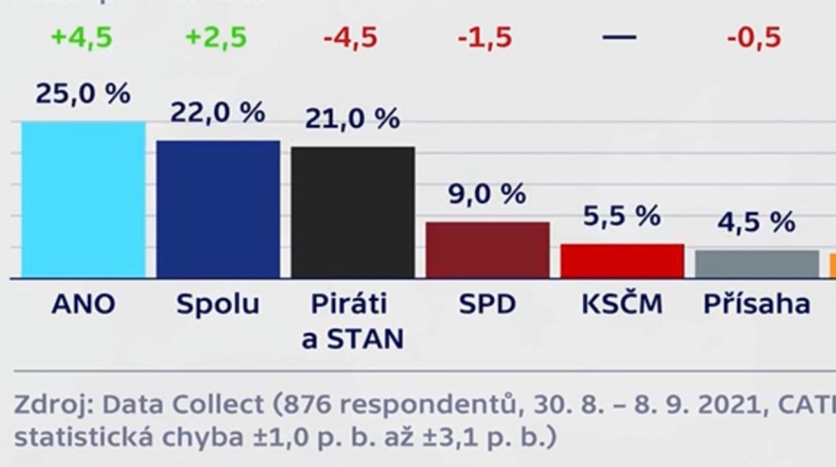 Piratenpartei Tschechien nicht mehr ganz so stark wie zuletzt (>30%) aber immer noch 3. stärkste Kraft mit weiterhin dem Potential stärkste Kraft zu werden. Viel Erfolg bei den anstehenden Wahlen!