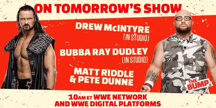 #WWETheBump!@DMcIntyreWWE will be in-studio tomorrow, and we have A LOT to discuss.