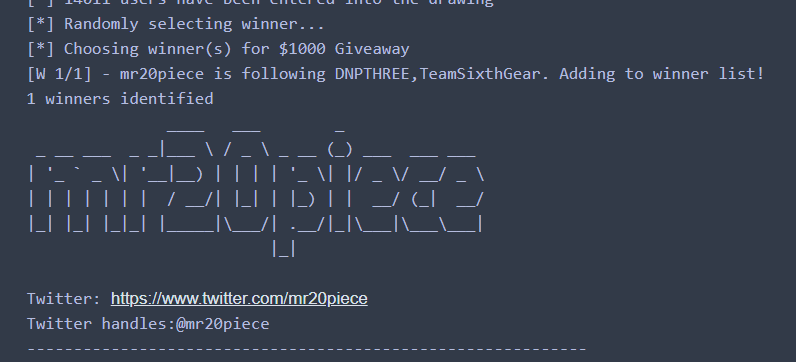 Congratulations to the $1,000 winner