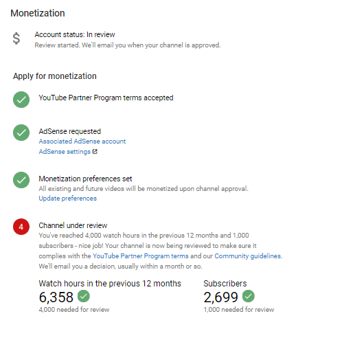Actually, none of those. This is my 3rd or 4th time applying and every time I get rejected, it doesn't give me a specific reason as for why. I keep thinking it's the videos I make & yet there's tons of channels slipping by doing the exact same thing. I just wanna be monetized.