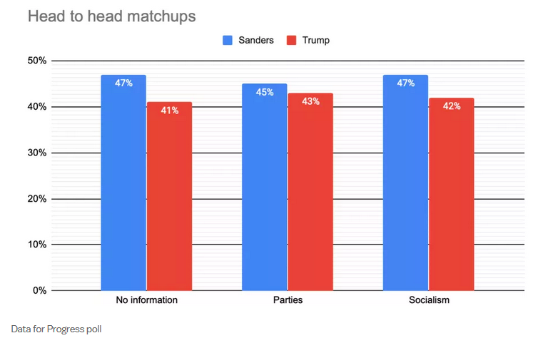 Bernie beats Trump, but check this out: If you say he's a socialist who wants to tax billionaires, Bernie wins by 5 pts If you just say Bernie's a Democrat, he only wins by 2 pts ¯\_(ツ)_/¯ https://www.vox.com/2020/1/31/21113780/bernie-sanders-socialism-electability-primaries …pic.twitter.com/9DOoTdXQch