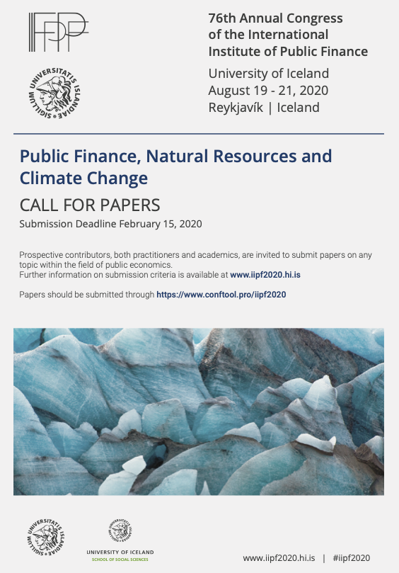 Fellow public economists: call for papers for the excellent IIPF conference in August (this year in Iceland!), submission deadline February 15! https://iipf2020.hi.is/submisson/ pic.twitter.com/Q69p4SoMi0
