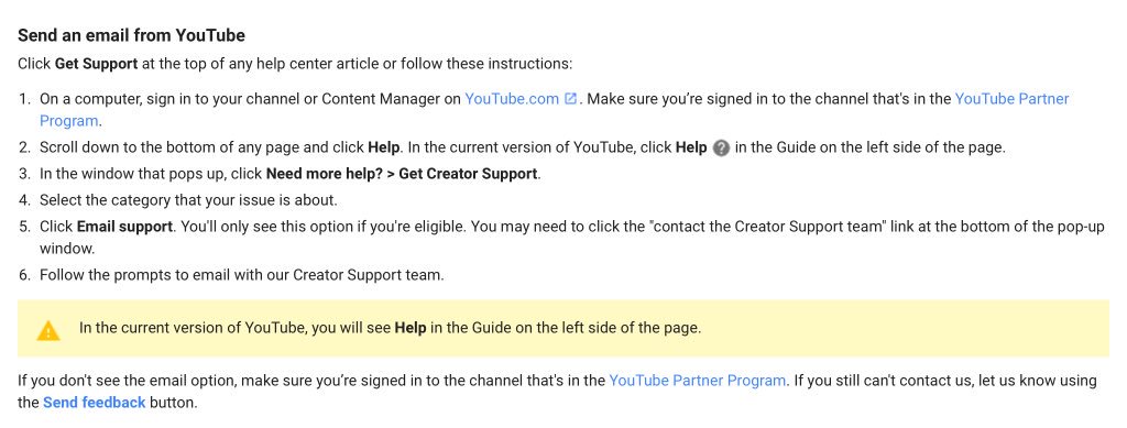 there isn’t an email address from YT (I think so). So the only solution is probably twitter. YT takes around 15 hours or less to respond cause of how much tweets they’re getting. If they don’t respond in less than 15 hours, ya might have to tweet again