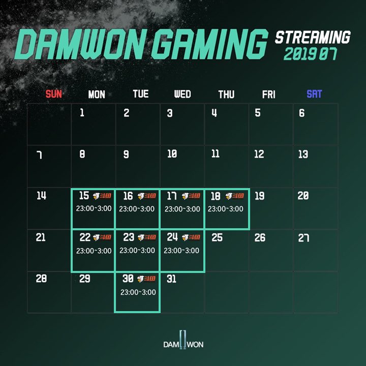 This is the streaming schedule of DWG. Please click the links below to watch the Live!