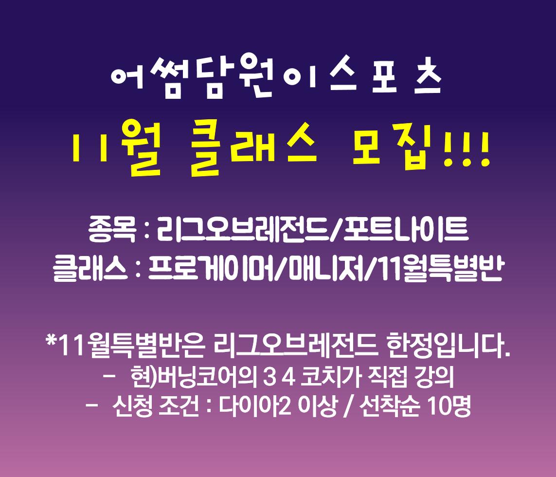 어썸담원이스포츠 11월 클래스 오픈! 지금 바로 상담 받으세요😎 👉 https://awesomedamwon.com/support/personal-counsel …pic.twitter.com/xt6C71yPLI