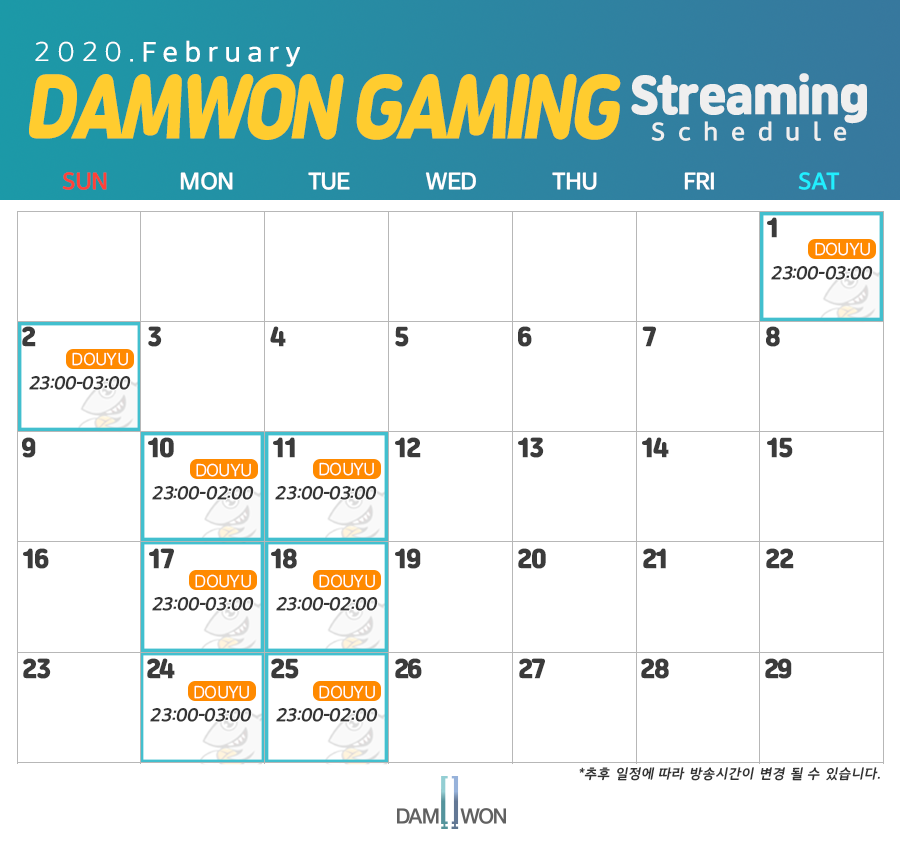 담원게이밍 선수들 2020년 2월 도유TV 방송 스케줄입니다!