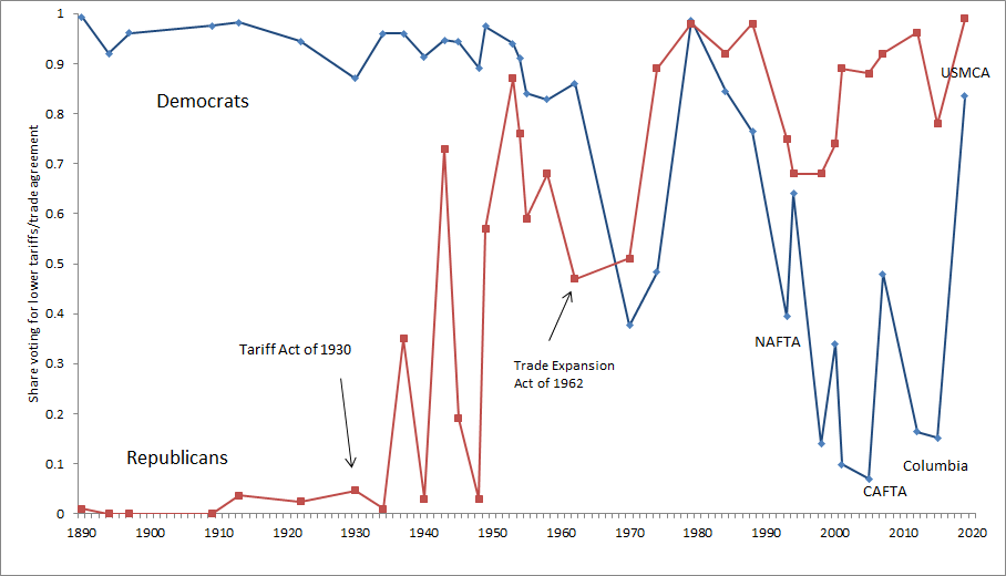 Back to bipartisan trade voting with USMCA? Too soon to say, but today's House vote looks more like those from the 1970s & 80spic.twitter.com/0JenLYdHa6