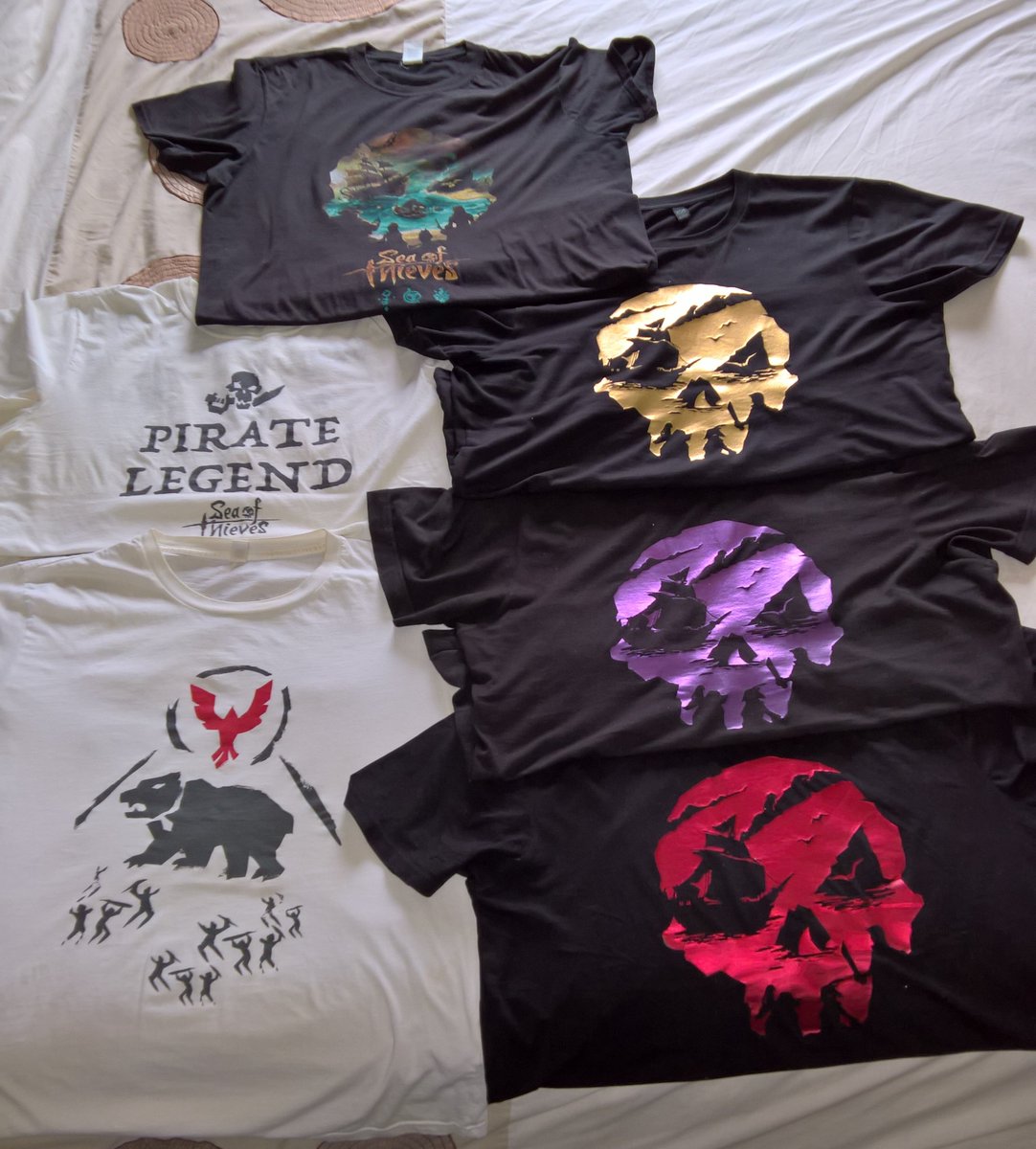 #SeaOfThieves T-Shirts (and other merch) As well as those in the pic I also have the glow-in-the dark one, and this one https://bit.ly/2wdxhyt on pre-order. Wish I had the green foil one (it was never sold in the Store)pic.twitter.com/VCj1oN4jCA