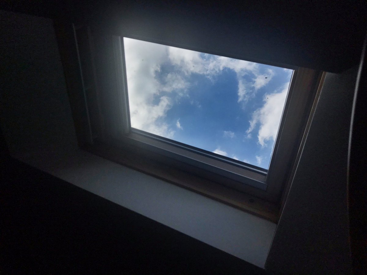 My last studio apartment had windows in the ceiling like this. I used to wake up every morning before work and watch the clouds roll by