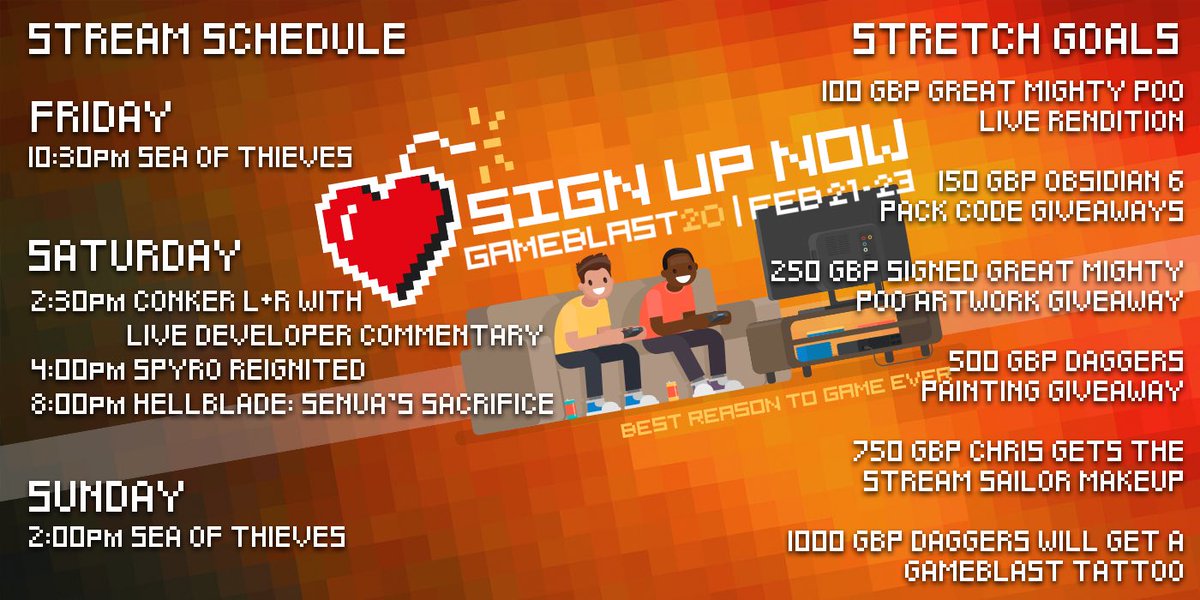 Do you want to see a Conker's Bad Fur Day playthrough by the Great Mighty Poo himself? Of course you do! That's just one part of our big #GameBlast20 weekend of streams! Tomorrow @ 14:30 GMThttps://twitter.com/DaggerMcTimbers/status/1230274678855475202 …