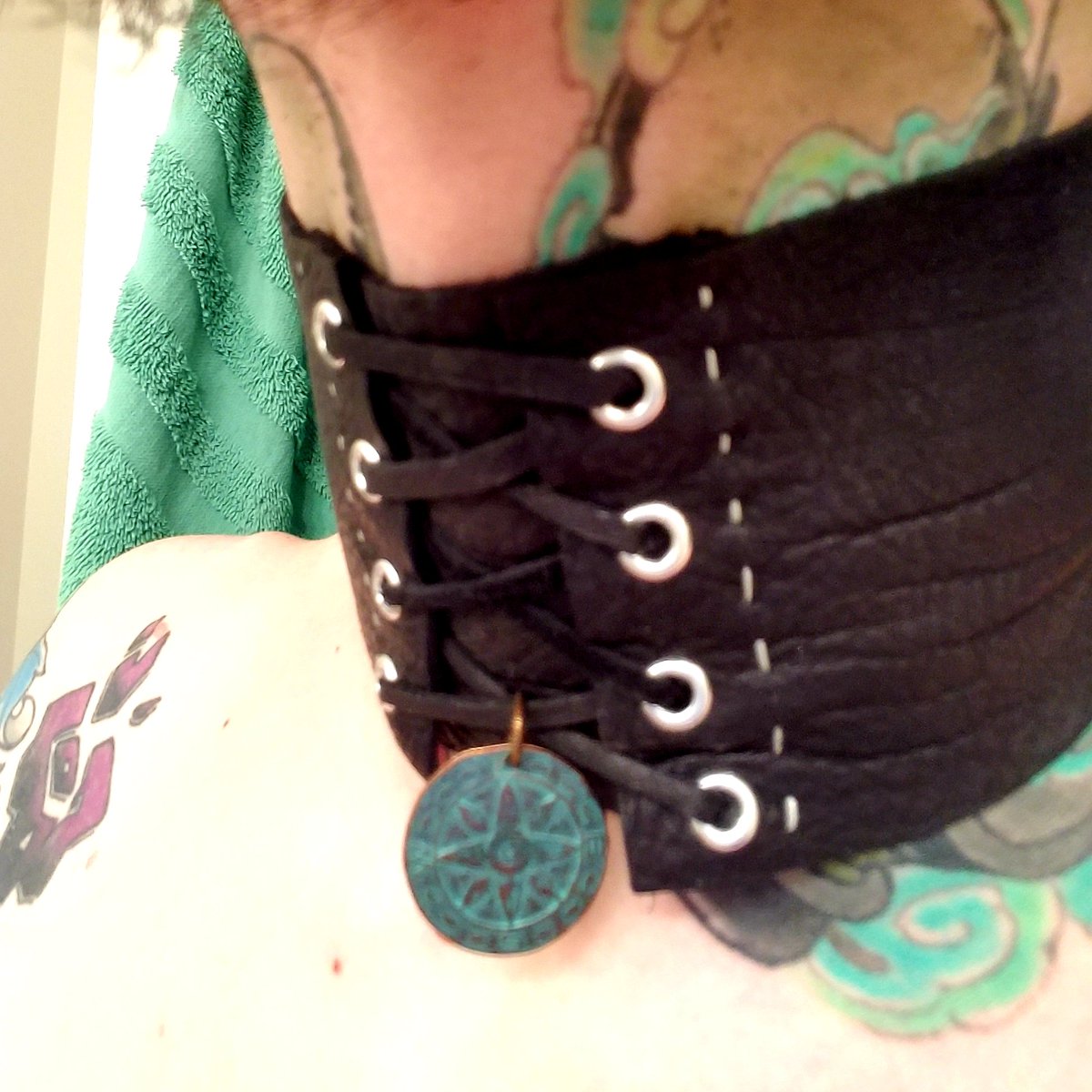 A choker I made a while back for a pirate costume. I don't wear it much cause of the neck tattoo, but turned out better than I thought.pic.twitter.com/POJPl3cFMY