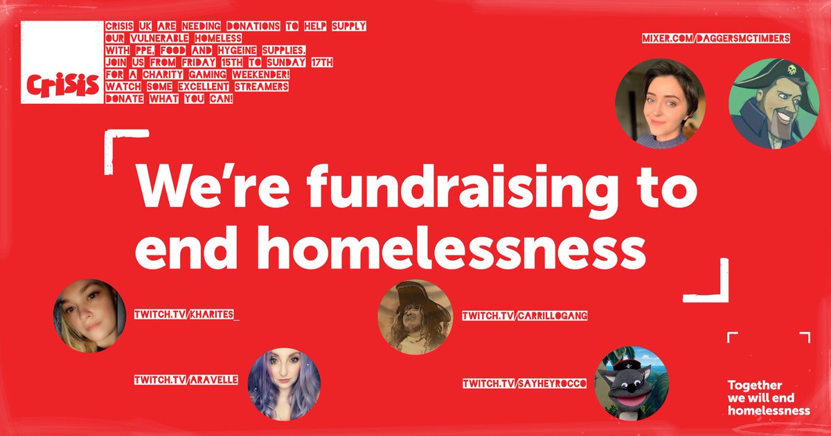 Here’s the streamer lineup for this weekend’s charity event! We have all come together in aid of @crisis_uk to help support the homeless during the pandemic. Keep an eye out for further updates but for now, here’s the donation link: http://www.justgiving.com/Harriet-Morris8?utm_id=124 …pic.twitter.com/PT1pMjQQgV
