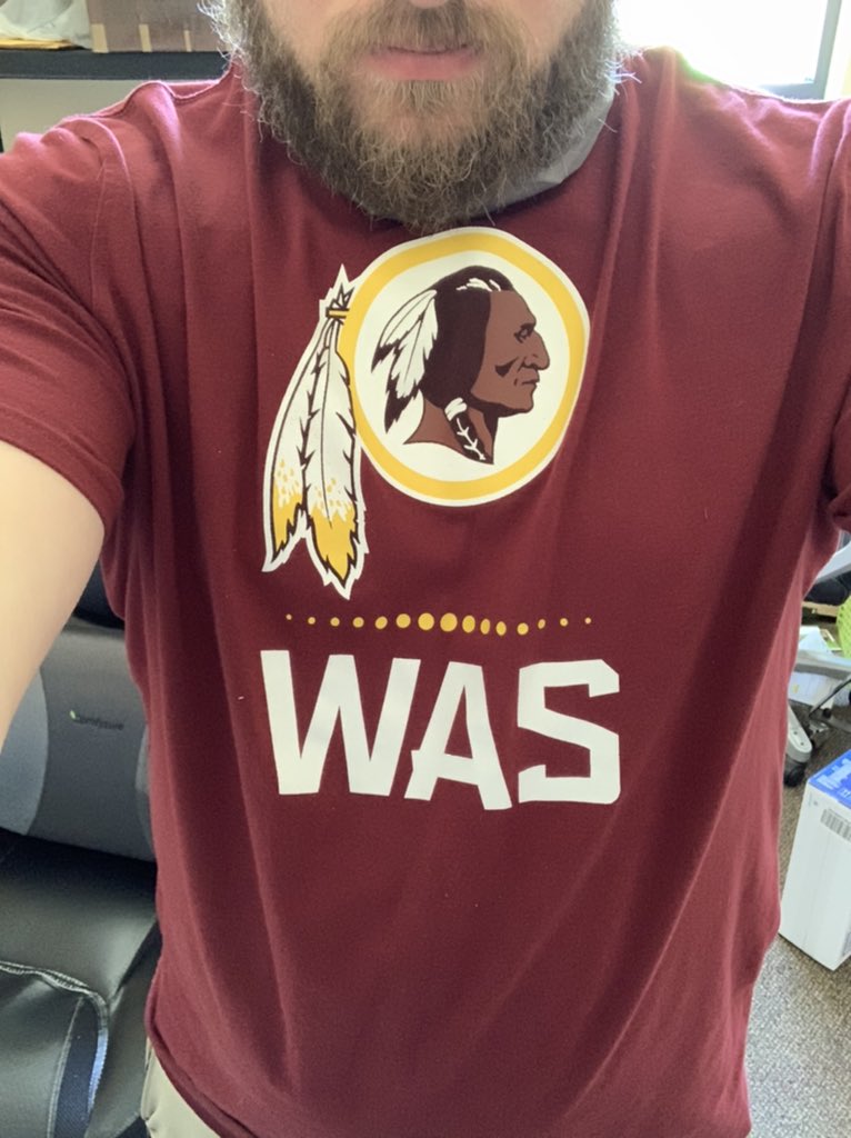 Wore my #Redskins shirt today as a farewell to the team name I’ve loved all my life. Multiple people have thought I was making a statement by saying “Was Redskins”. Lol no I promise it’s just Washington abbreviated. Look I’m even wearing the shoes to match hahaha #HTTRpic.twitter.com/TyMAFJk1Sx