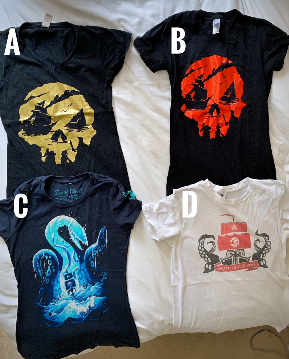 We’re returning to #SeaOfThieves tonight for the Sunday night stream. What t-shirt should I wear for the occasion?