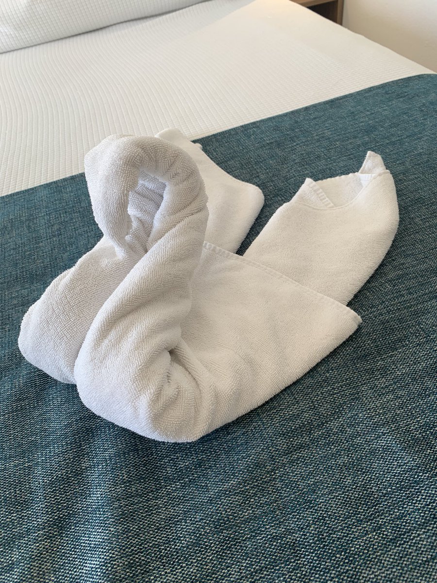Made it to the hotel, it’s AMAZING and they made a fancy swan pillow 🦢 I’m working class, these things amuse mepic.twitter.com/e5dgaJfCy9