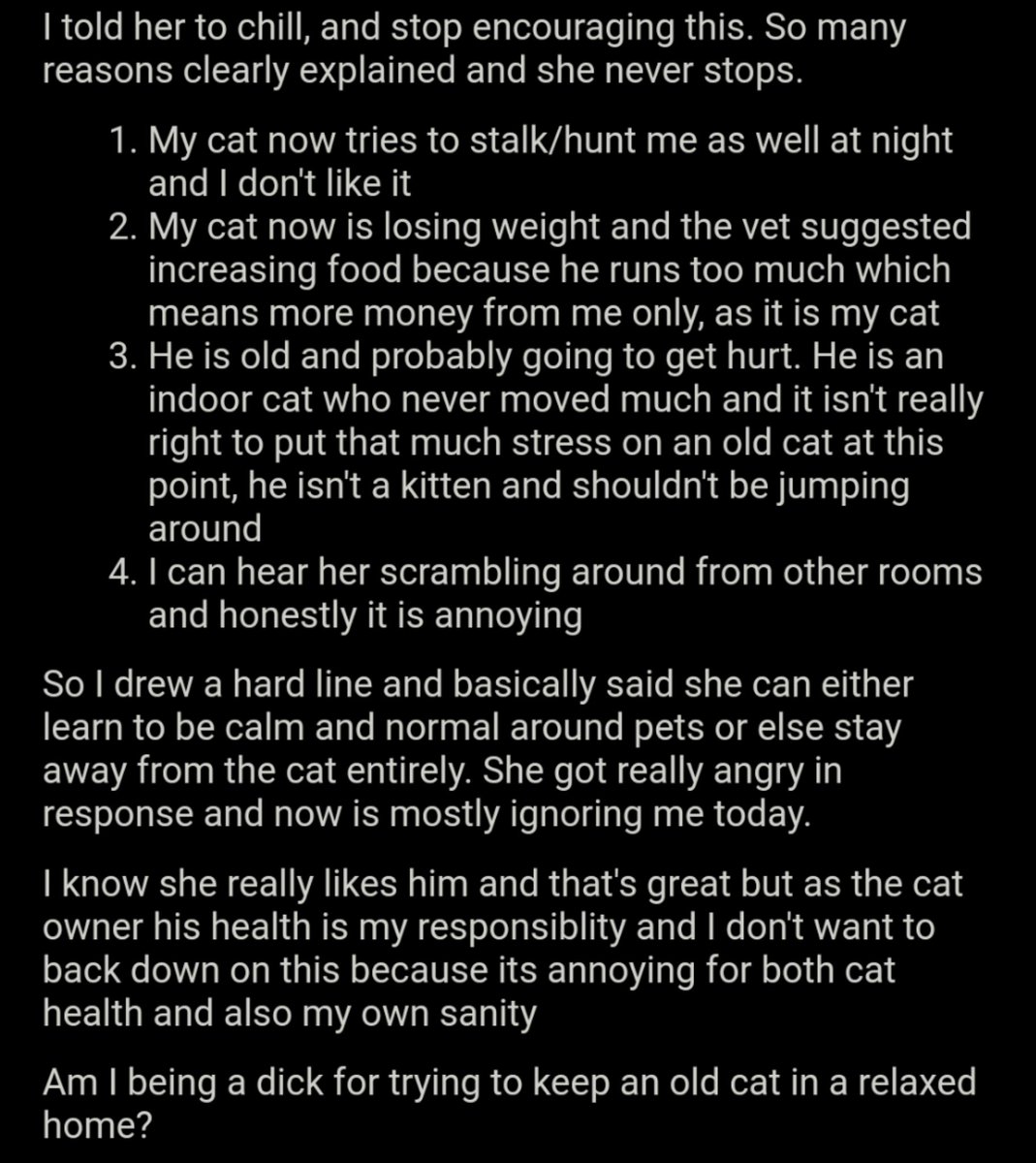 AITA for telling my gf to act more calmly around my cat? https://bit.ly/3mB4wV0 pic.twitter.com/XxhHMd7CtJ