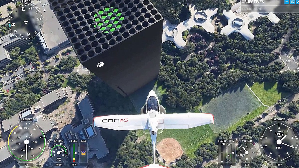 Microsoft Flight Simulator player adds a towering Xbox Series X to Redmond, Washington https://buff.ly/3lJIhem  pic.twitter.com/ZbpGVfKTwP