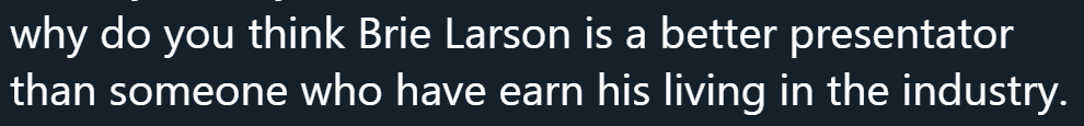 Seeing a lot of angry, gatekeeping, gamer incels being upsetti about Brie Larson presenting #TheGameAwards.pic.twitter.com/m8VX5uq9XT