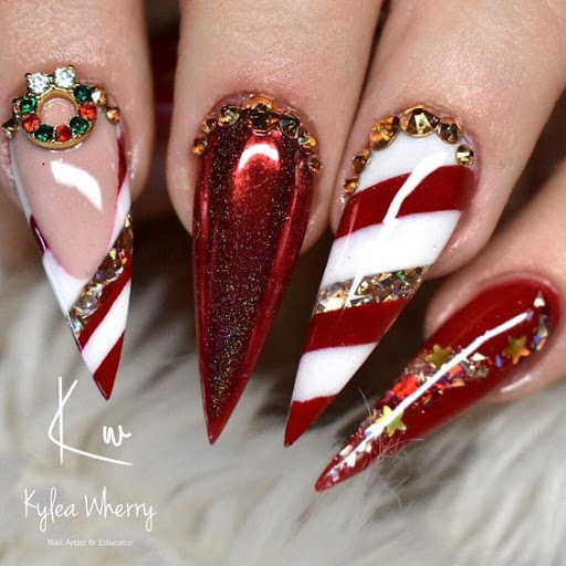 CANDY CANES! In a threateningly pointy stilleto, a style that once made an old lady look at mine and go "You're going to put all the fellas off with those," and now I only EVER have them pointy!pic.twitter.com/84poe5L9n4