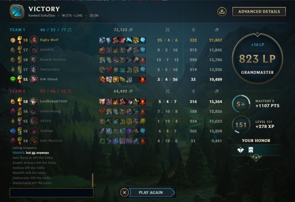 Despues de casi 2 años vuelvo a estar en 1000LP, muy contento con mi nivel individual ultimamente y confiado en mi mismo. Voy a intentar pillar rank 20 y subir la smurf tambien a 1000LP Cant wait for