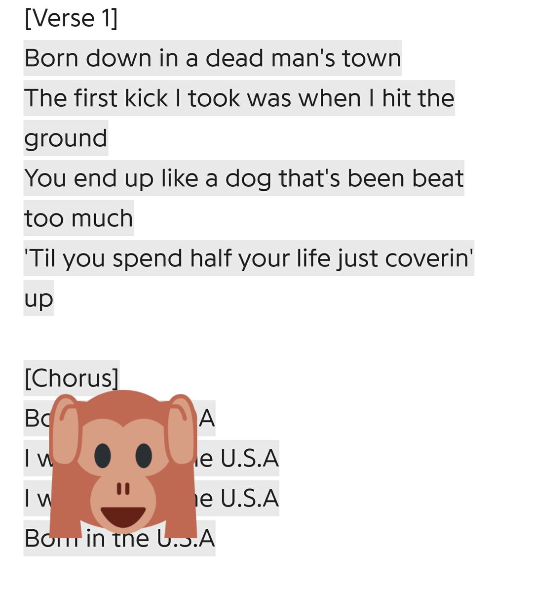 His views are consistent with the song Born in the USA. Every lyric but the chorus is talking about hoe the USA poorly treats their veterans and sends soldiers to meaningless wars.pic.twitter.com/YhVpYhb1se