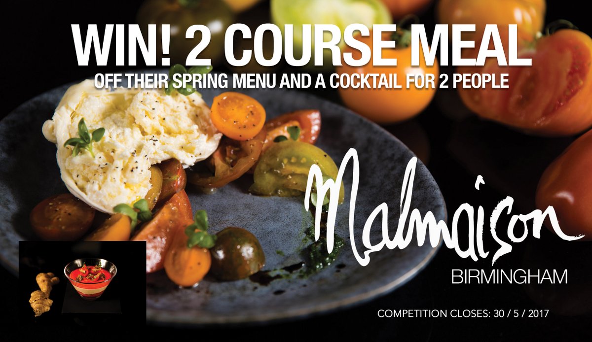 #WIN! 2 courses and a cocktail for 2 people from@BirminghamMal's Spring Menu. FOLLOW + RT before 30/5 to enter!pic.twitter.com/aY9B2nWd8y