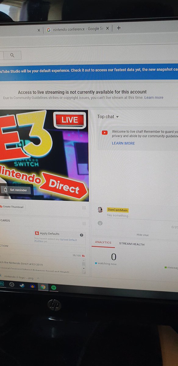 @TeamYouTube You have just revoked my ability to Livestream for absolutely no reason! Please help and fix this... I'm meant to be Live for the Nintendo Direct E3 event in one!